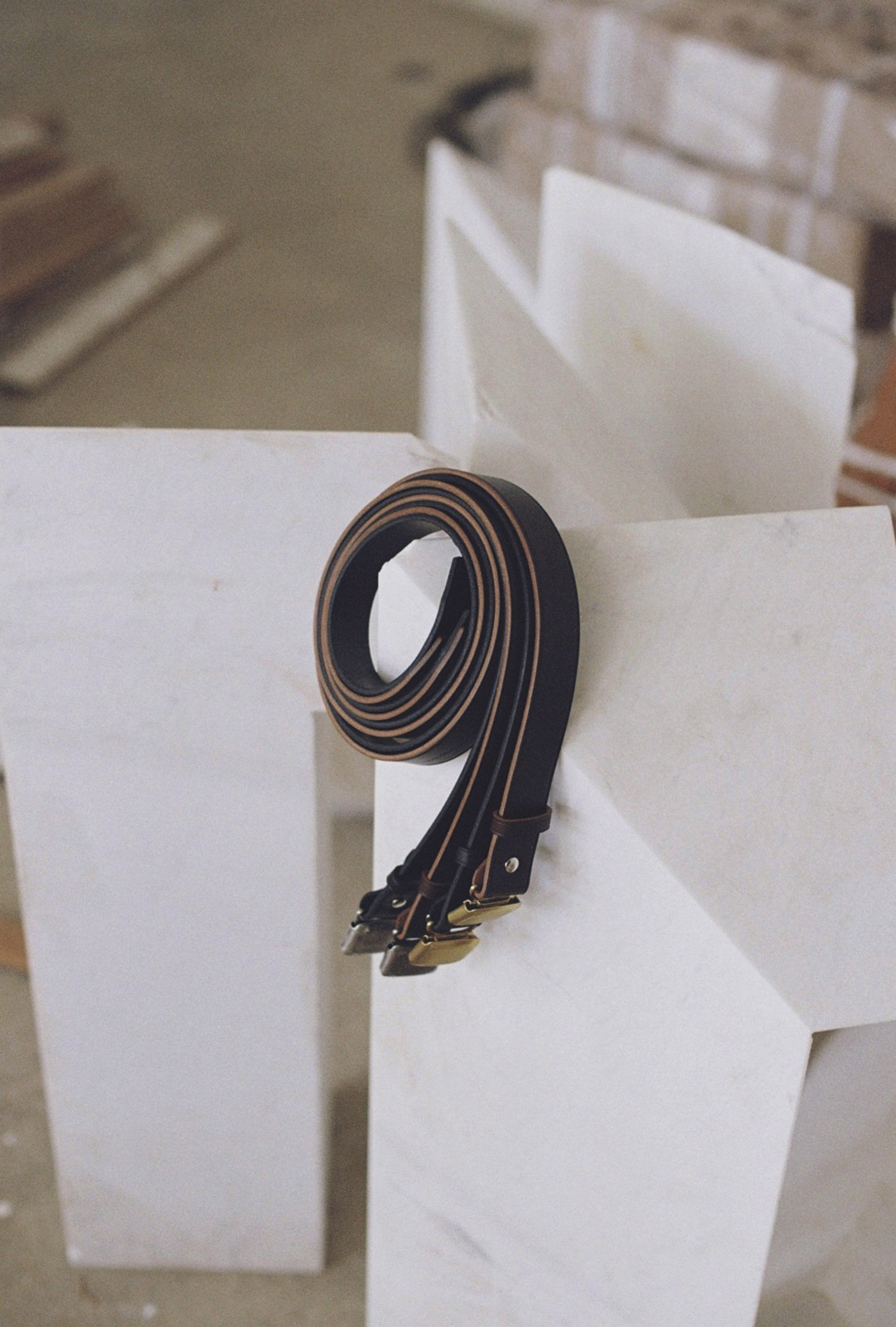 1920〜30年代に見られたHickok beltを、PHIGVELのフィルターを通して再構築。簡素な見た目に反する機能美とエレガンスを両立した、THE PERMANENTを代表するプロダクトです。最大の特徴は、オリジナルバックルの構造にあります。通常のベルトにあるピンホールを排した“ホールレス”仕様で、バックルにベルトを差し込み挟み込んで留める、当時の簡素ながら理にかなった構造を採用しています。この構造により、脱着のスムーズさに加え、ウエストサイズに対して細かくフィットさせることが可能です。素材には、わずかにシボ感のある上質なカウハイド(牛革)を使用。手に取った瞬間に感じられる、しっとりとした質感と堅牢なつくりも魅力の一つです。オリジナルで製作しているバックルは、いずれも真鍮素材を使用したシルバーとゴールドの2色をご用意。レザーとの組み合わせにより、スタイルに奥行きをもたらします。さらに、PROD直営店舗ではバックル単体での購入も可能です。スタイリングや気分に合わせて付け替えをお楽しみください。カジュアルからドレスシーンまで幅広く対応し、季節やトレンドに左右されない普遍的なプロダクト。まさに、“長く使える道具”としての魅力を備えた一本です。