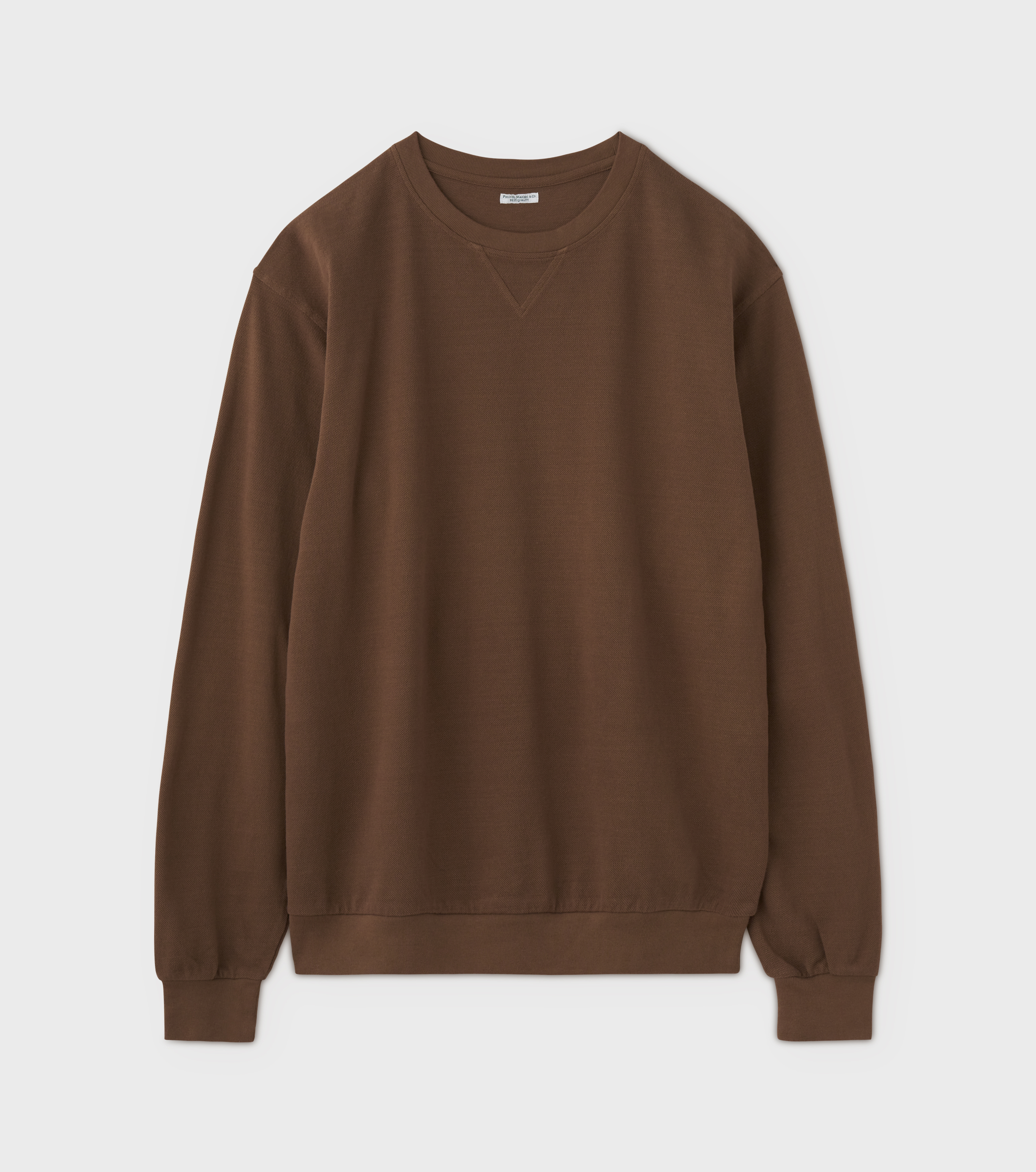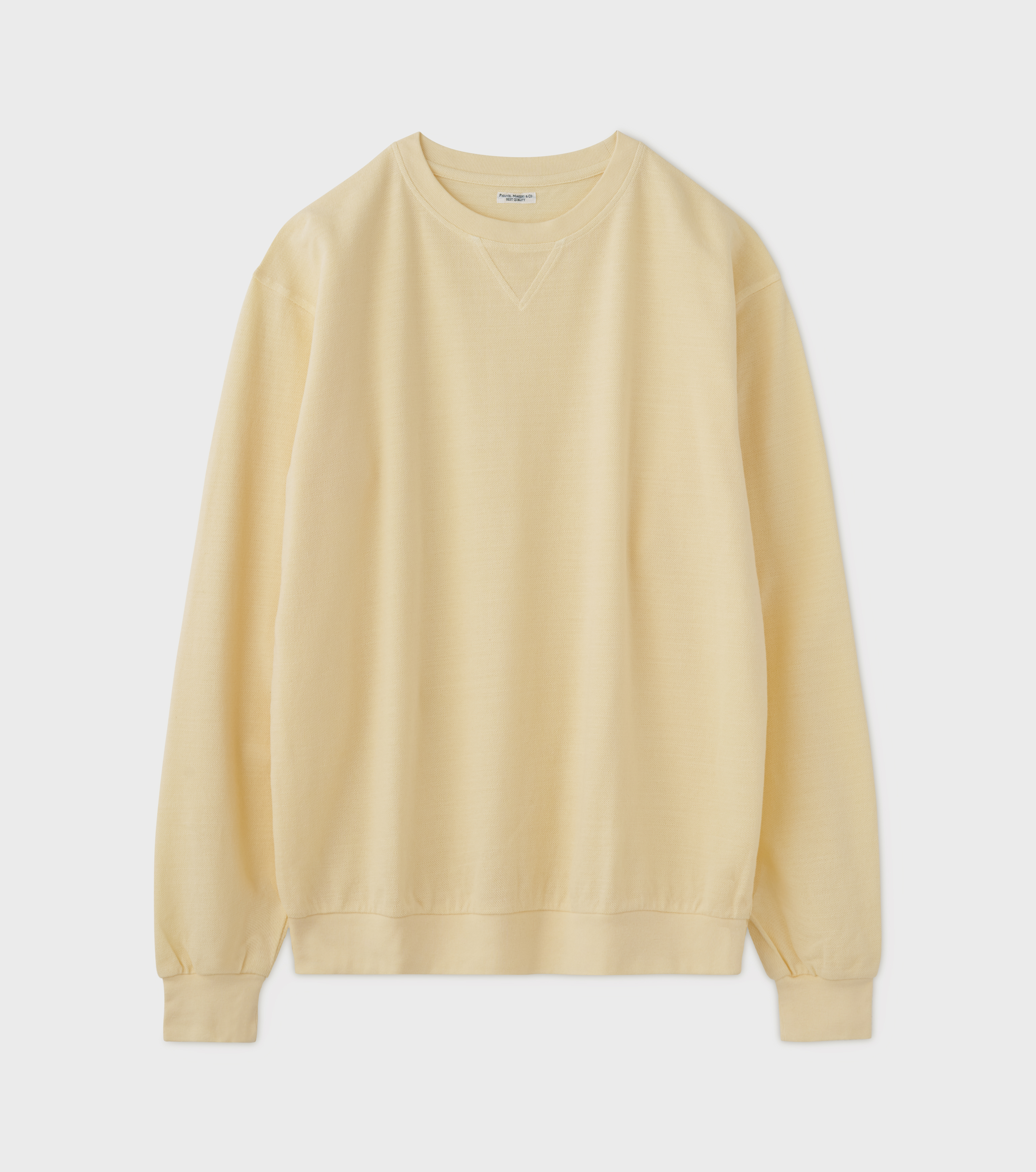 重厚感のあるヘヴィーウエイトのワッフル素材を使用しつつ、見た目に反して驚くほど柔らかな着心地を実現したオリジナルファブリック。ワッフル特有の凹凸が空気の層をつくり高い保温性を生み出す一方で、余分な湿気を逃がす通気性にも優れており、体温調整が難しい季節でも快適に過ごせます。日常使いを想定したタフな作りも魅力。ネックは耐久性に優れたバインダー仕様を採用し、袖口はレイヤード時にごわつきを抑える薄手設計で、細部にまで実用性を追求しています。シンプルなデザインゆえに飽きが来ず、色違いで揃えたりシーズンごとに買い足す方が多いのもこのモデルならでは。冬が深まる2月末まで長く活躍する汎用性の高さは、PHIGVELが大切にしている普遍性とも深く結びついています。単体でも、アウターやインナーとの重ね着でも、落ち着いた存在感を保ちながら、日々のスタイルに静かに馴染む一着です。